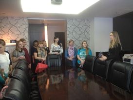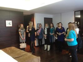 Сегодня студенты заочного обучения (гр.Зттур-12) посетили отель "Саен" 4* в рамках дисциплины "Специфика протокола в индустрии гостеприимства". Управляющая отелем Инна Вадимовна Коровина, не только провела экскурсию по отелю и ресторанам "Киото" и "Стрижи", но и дала уникальный интерактивный мастер-класс по организации обслуживания гостей в отелях высшего уровня. Студенты узнали особенности подбора персонала, хитрости "обхода" трудных и конфликтных ситуаций, личностные качества, необходимые в работе "нон-стоп", стандарты комплектации номеров и особенности уборки и другие тонкости, которые знают только профессионалы.....
